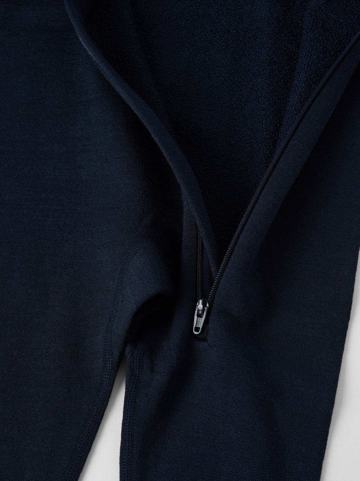 Lämmin haalari pehmeää ja ihanaa merinovillafroteeta, joka imee tehokkaasti kosteutta ja pitää lapsen lämpimänä ja kuivana. Frotee säilyttää lämmittävän ilmakerroksen lähellä kehoa ja villa sekä pitää lämpöä että hengittää. Haalarissa on edessä pidennetty vetoketju, joka helpottaa pukemista ja riisumista.